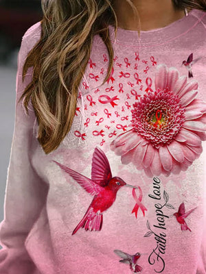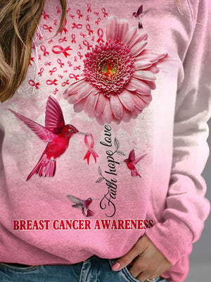 Faith Hope Love Breast Cancer Awareness Print Sweatshirt