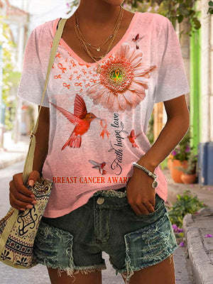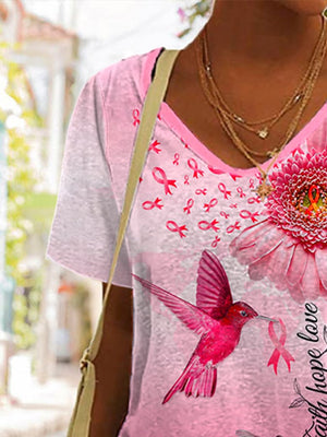 Faith Hope Love Breast Cancer Awareness Print T-Shirt