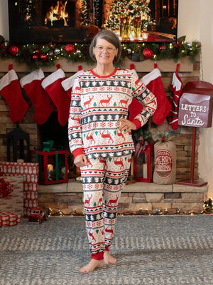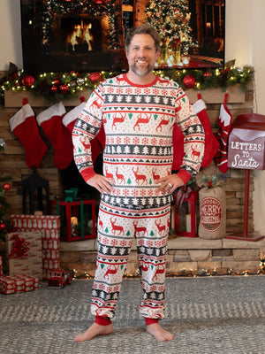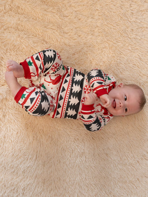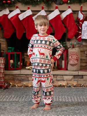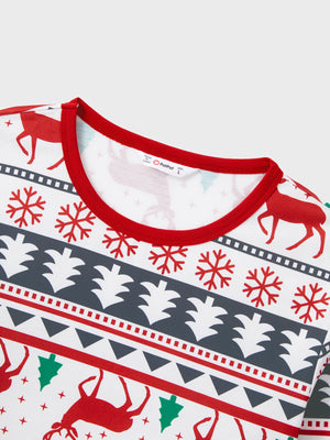Family Christmas Pajamas All Over Reindeer Print Long-sleeve with Christmas Socks (SGS Certied Safety) Red+White