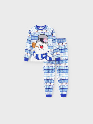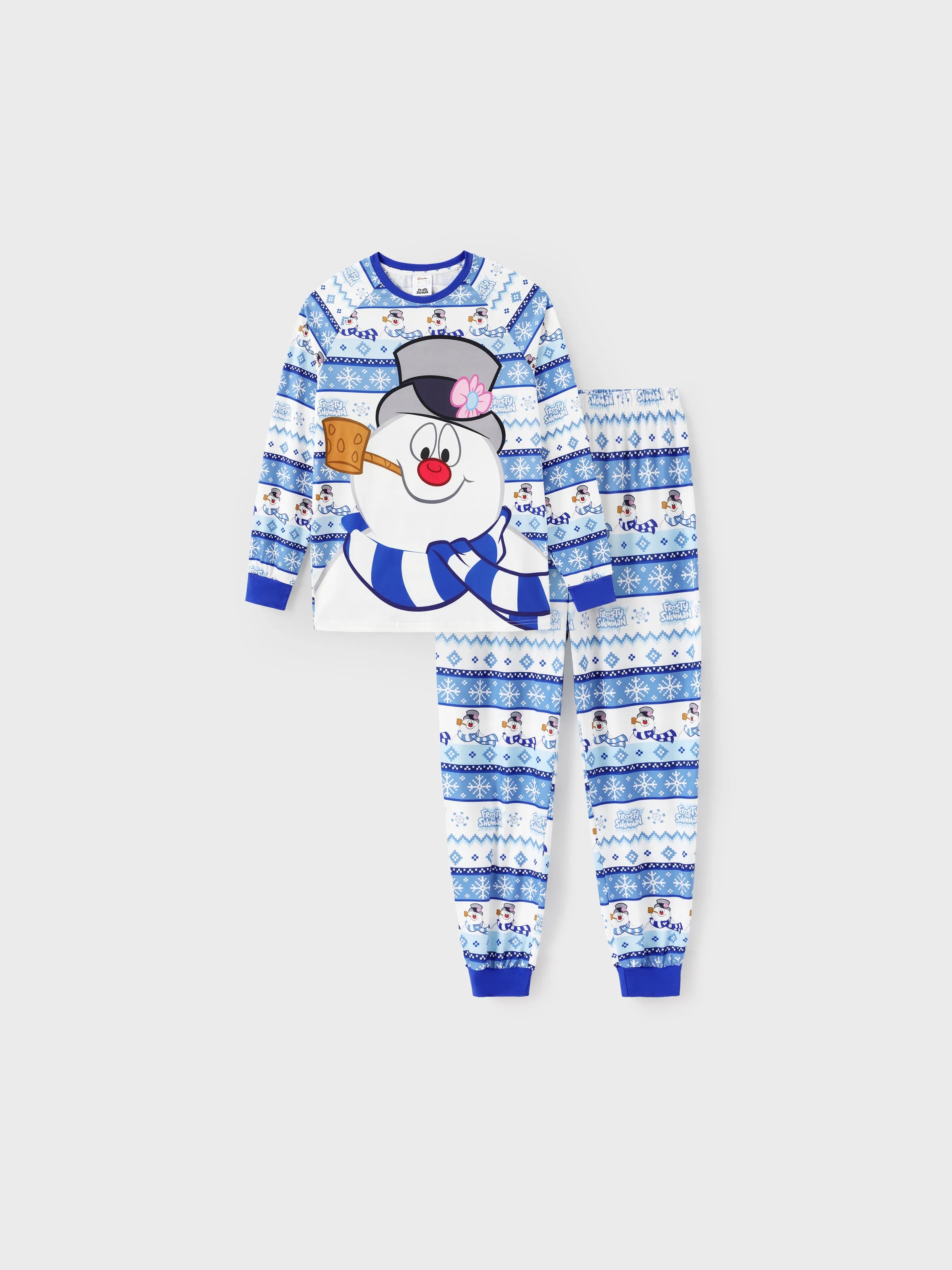 Frosty the Snowman Christmas Family Matching Pajamas Set with Christmas Socks Blue