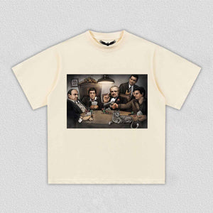 This t-shirt is a relaxed fit; true to size. We recommend sizing up if you prefer an oversized fit.