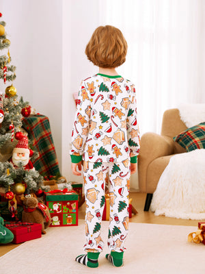 Coordinating family sleepwear in fun Christmas cookie pattern.