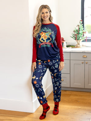 Harry Potter Christmas Family Matching Hogwarts Print Pajamas Sets with Christmas Socks