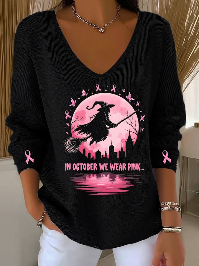 I Wear Pink Breast Cancer Awareness Print Long Sleeve T-Shirt in October