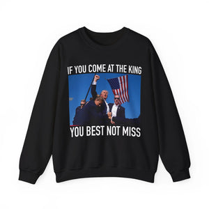 Express your bold political humor with this If You Come at The King You Best Not Miss Shirt. This shirt captures a dramatic moment in political history, making it a perfect gift for anyone who enjoys edgy humor and political satire. Order yours today and make a statement!