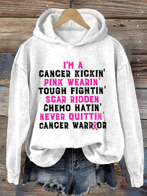 I'm A Cancer Kickin' Pink Wearin' Tough Fightin' Scar Ridden Chemo Hatin' Never Ouittin' Cancer Warrior Print Hoodie