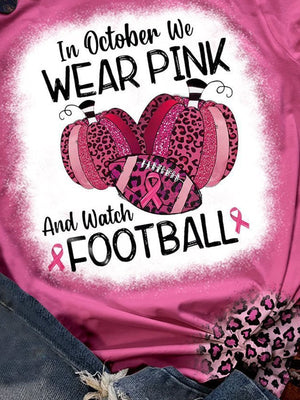 In October We Wear Pink And Watch Football Leopard Print T-Shirt