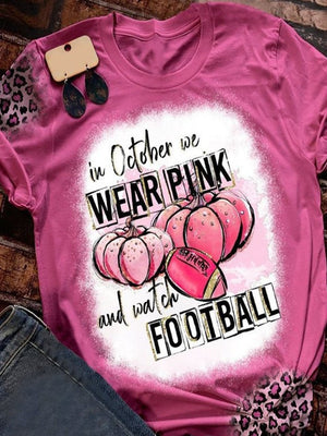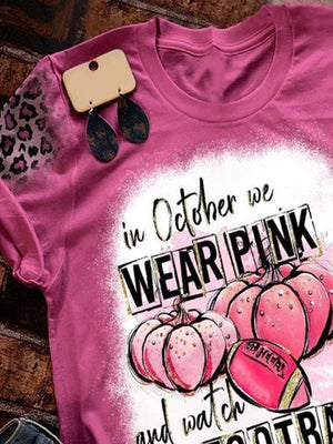 In October We Wear Pink And Watch Football Leopard Print T-Shirt