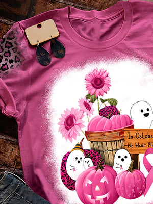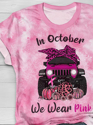 In October We Wear Pink Print T-Shirt
