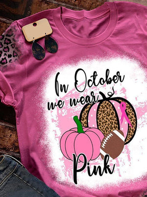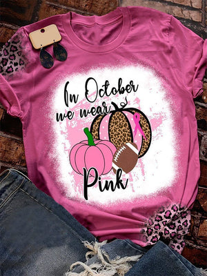 In October We Wear Pink Pumpkin Football Leopard Print T-Shirt