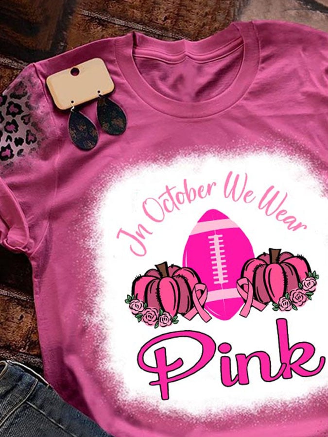 In October We Wear Pink Pumpkin Football Leopard Print T-Shirt