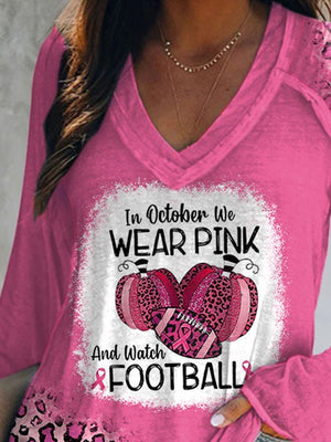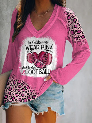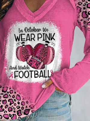Leopard In October We Wear Pink And Watch Football Print Long Sleeve T-Shirt