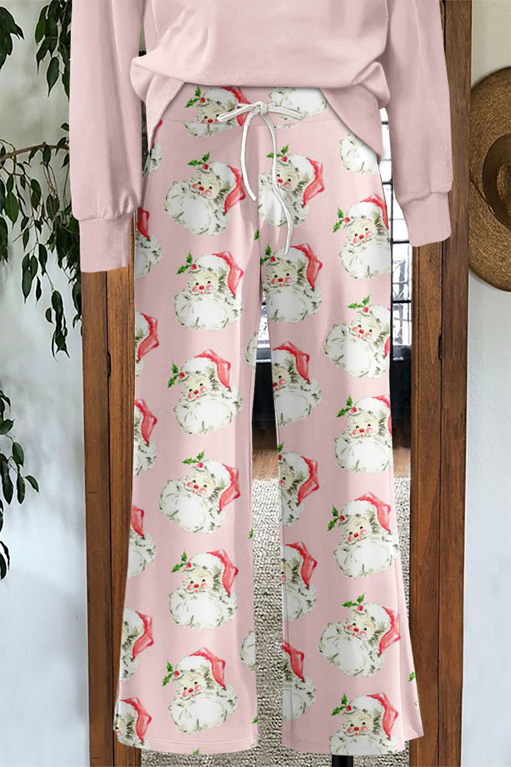 Sweet Christmas Santa Claus Printed Wide Leg Pants