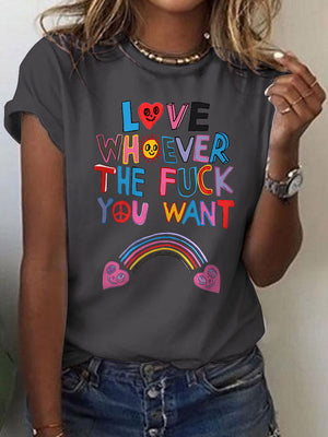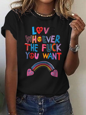 Love Whoever The Fuck You Pride Month Art Casual Print T-shirt