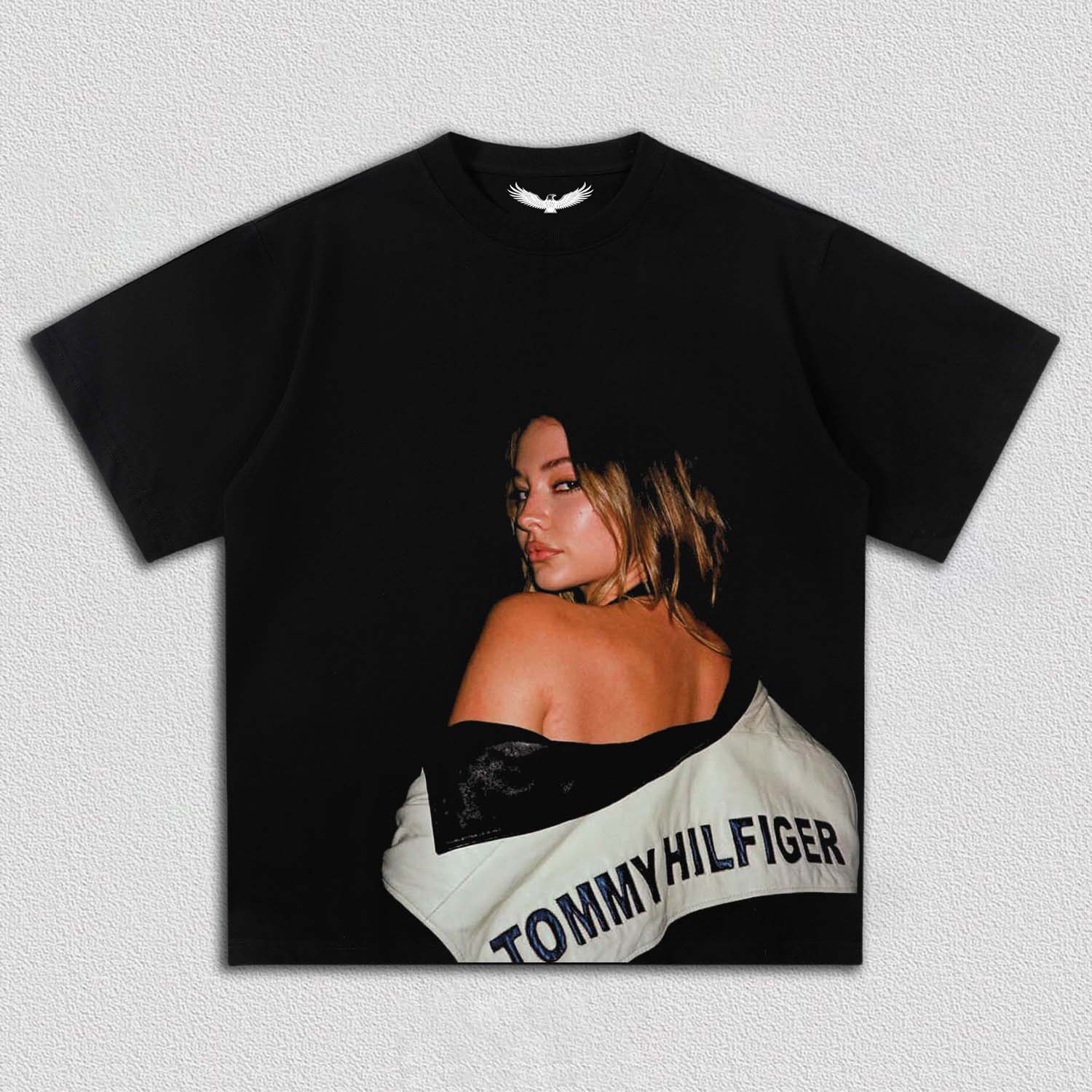 This t-shirt is a relaxed fit; true to size. We recommend sizing up if you prefer an oversized fit.