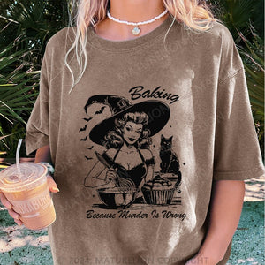 Maturelion Halloween Baking Because Murder is Wrong DTG Printing Washed Cotton T-Shirt