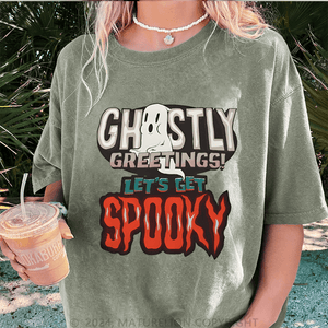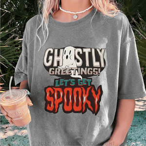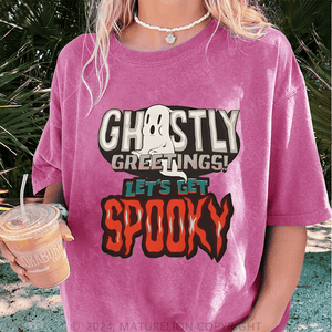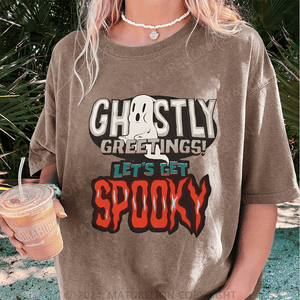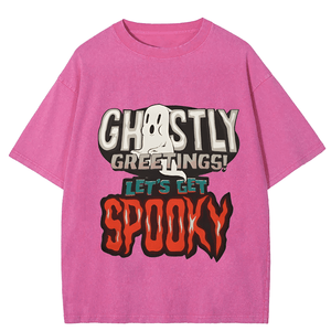 Maturelion Halloween Chosty Greetings! Let's Get Spooky DTG Printing Washed Cotton T-Shirt