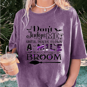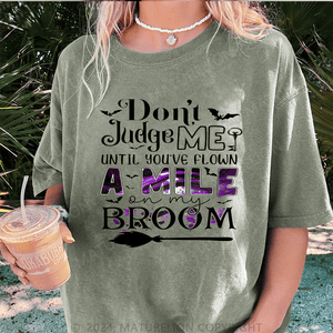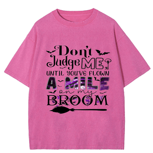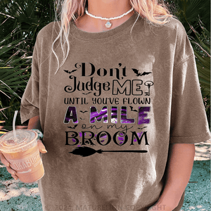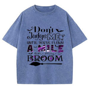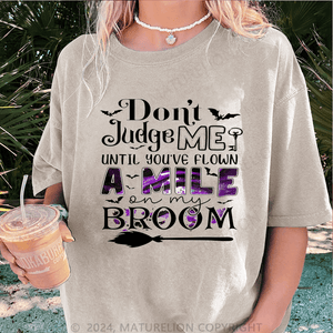 Maturelion Halloween Don't Judge Me Until You've Flown A Mile On My Broom DTG Printing Washed Cotton T-Shirt