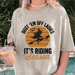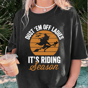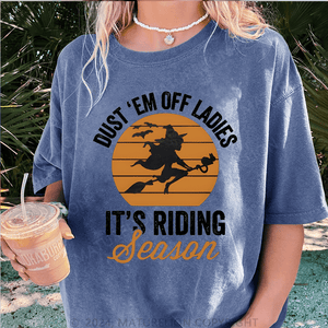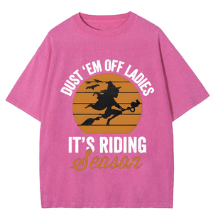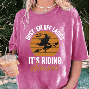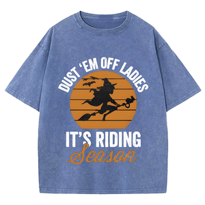 Maturelion Halloween Dust Em Off Ladies It’s Riding Season DTG Washed T-Shirt