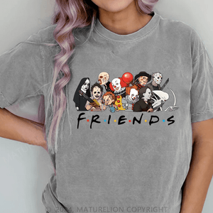 Maturelion Halloween Friends DTG Printing Washed Cotton T-Shirt