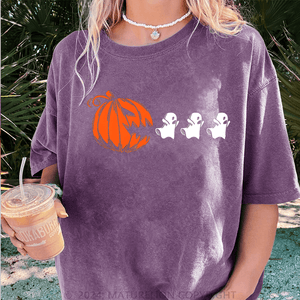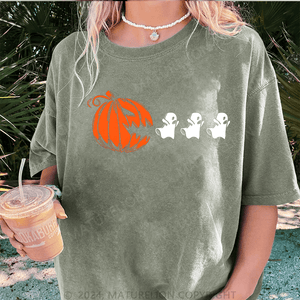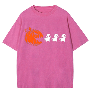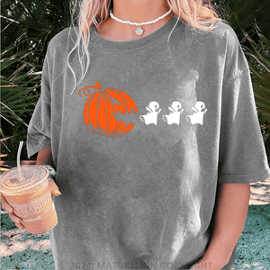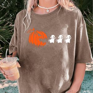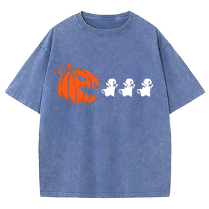 Maturelion Halloween Ghost Pumpkin DTG Printing Washed Cotton T-Shirt