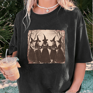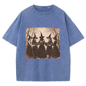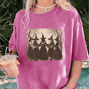 Maturelion Halloween Girls Will Be Girls Witch Funny DTG Printing Washed Cotton T-Shirt