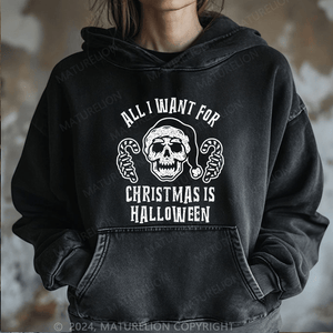 Maturelion Halloween All I Want For Christmas Is Halloween Washed Hoodie