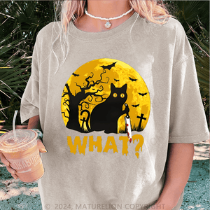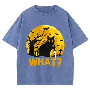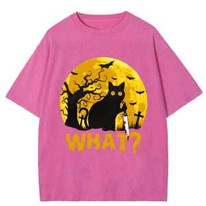 Maturelion Halloween Black Cat What Funny DTG Printing Washed Cotton T-Shirt