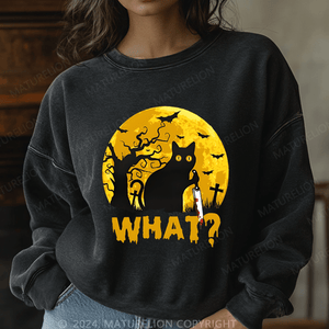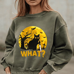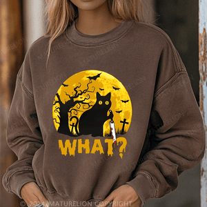 Maturelion Halloween Black Cat What Funny Washed Halloween Sweatshirt