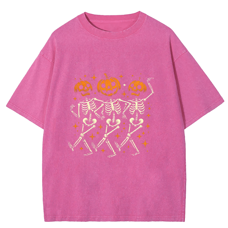 Maturelion Halloween Dancing Skeleton Washed T-Shirt