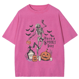 Maturelion Halloween Dancing Skeletons Washed T-Shirt