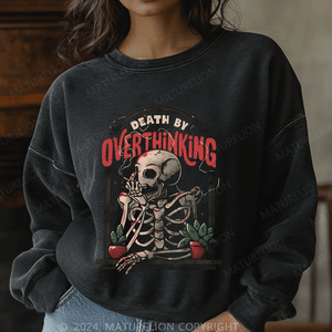 Maturelion Halloween Death By Overthinking Funny Washed Halloween Sweatshirt