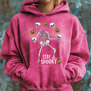 Maturelion Halloween Hoodie Stay Spooky Skeleton Women Washed Hoodie