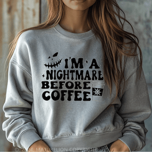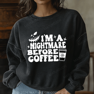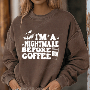 Maturelion Halloween I'm A Nightmare Before Coffee Washed Halloween Sweatshirt
