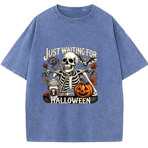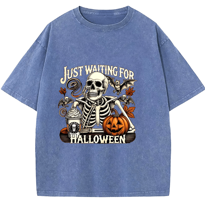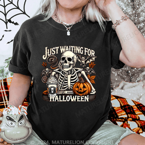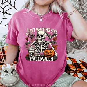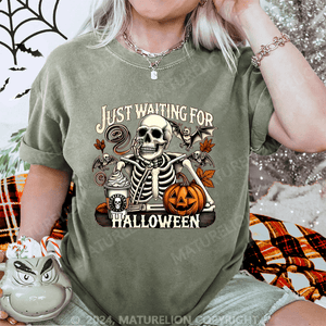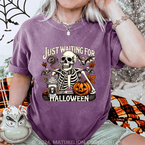 Maturelion Halloween Just Waiting for Halloween Washed T-Shirt