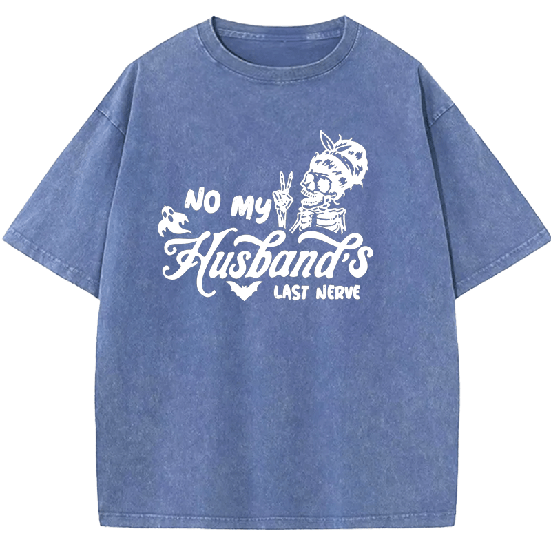 Maturelion Halloween No My Husband's Last Nerve Washed T-Shirt