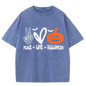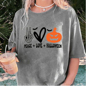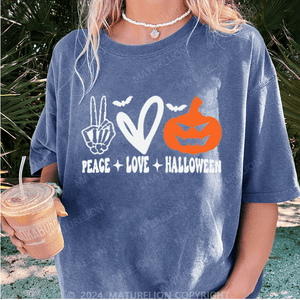 Maturelion Halloween Peace Love Washed T-Shirt
