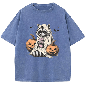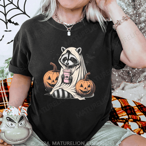 Maturelion Halloween Raccoon With Pumpkin Trick Or Trashy Washed T-Shirt