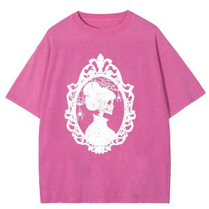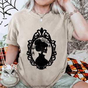 Maturelion Halloween Skeleton Lady Washed T-Shirt
