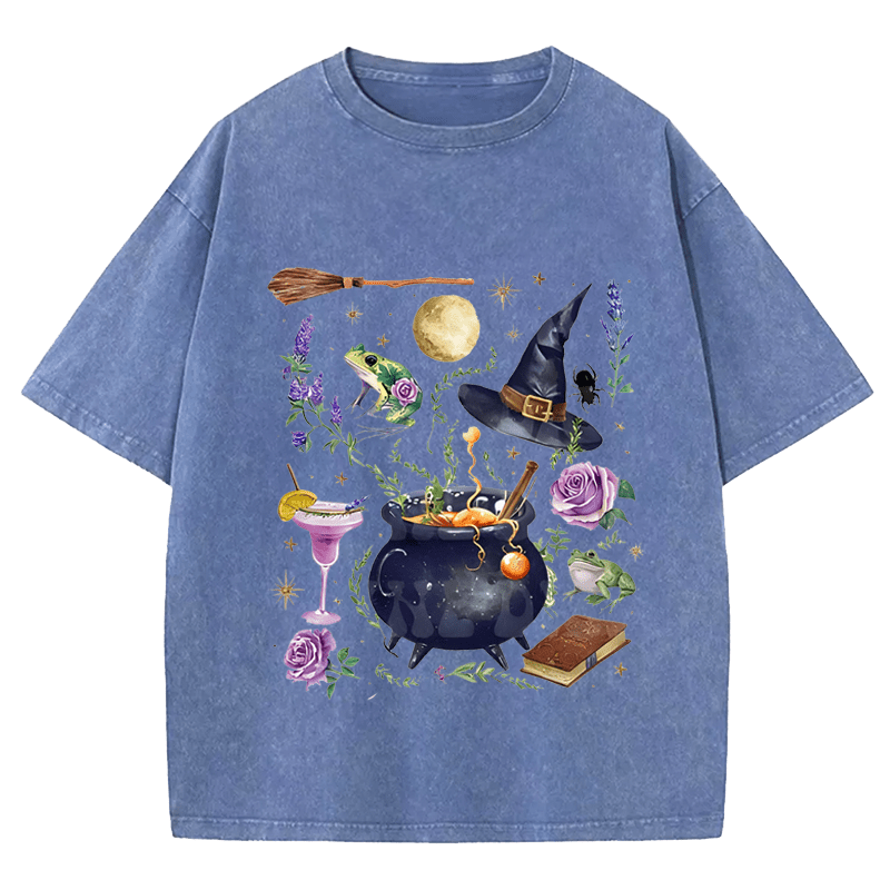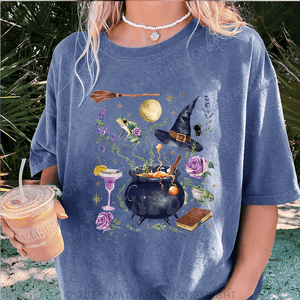 Maturelion Halloween Spooky Bitch, Pretty Girls Walk Vintage Distressed DTG Printing Washed Cotton T-Shirt
