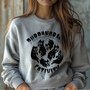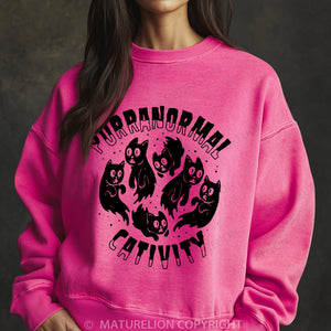 Maturelion Halloween Sweatshirt Cat Ghost Women Washed Sweatshirt