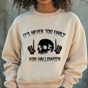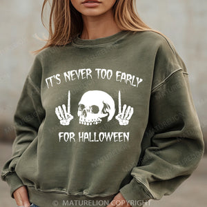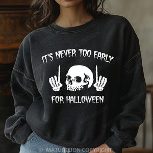 Maturelion Halloween Sweatshirt It's Never Too Early For Halloween Women Washed Sweatshirt