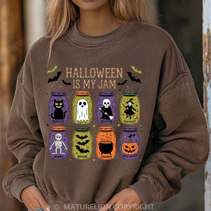 Maturelion Halloween Sweatshirt Popular Halloween Is My Jam Women Washed Sweatshirt