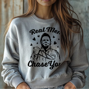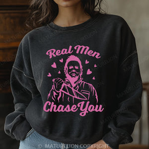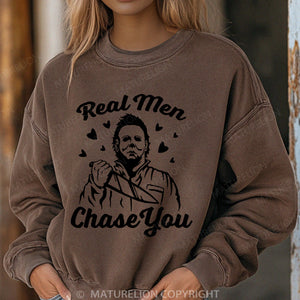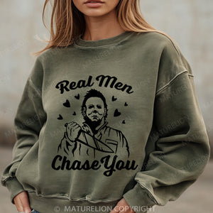 Maturelion Halloween Sweatshirt Real Men Chase You Women Washed Sweatshirt