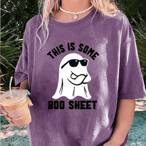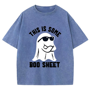 Maturelion Halloween This Is Some Boo Sheet DTG Printing Washed Cotton T-Shirt