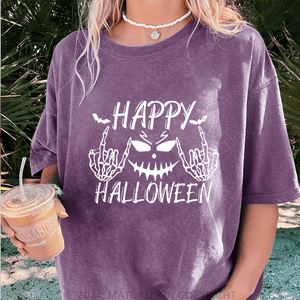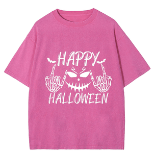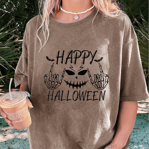 Maturelion Halloween Happy Funny DTG Printing Washed Cotton T-Shirt