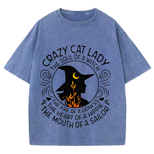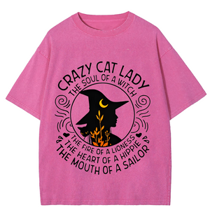 Maturelion Halloween Happy Halloween Lady Witch Casual DTG Printing Washed Cotton T-Shirt