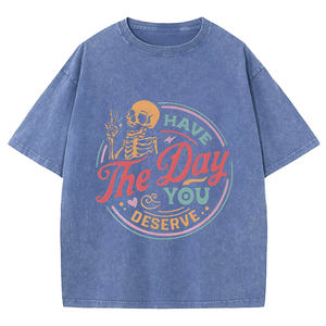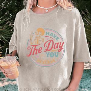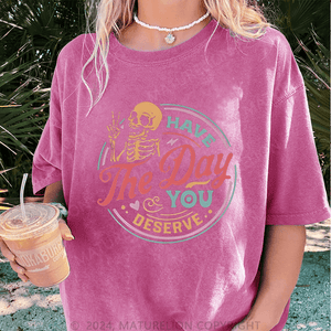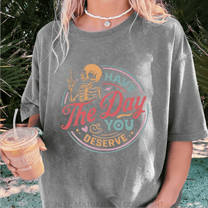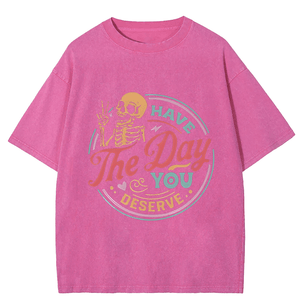 Maturelion Halloween Have The Day You Deserve Halloween Funny DTG Printing Washed Cotton T-Shirt