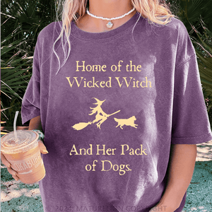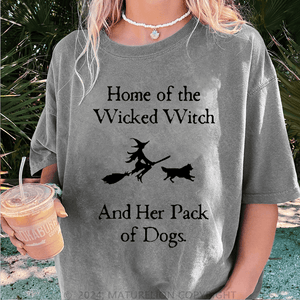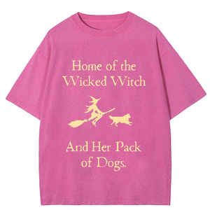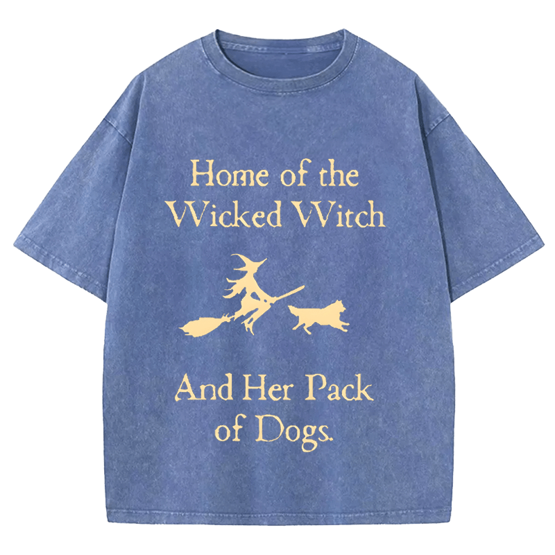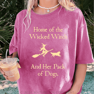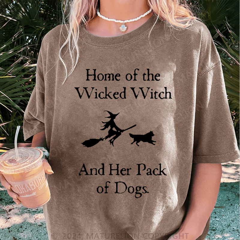 Maturelion Halloween Home Of The Wicked Witch And Her Pack Of Dogs DTG Printing Washed Cotton T-Shirt