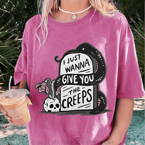 Maturelion Halloween I Just Wanna Give You The Creeps DTG Printing Washed Cotton T-Shirt